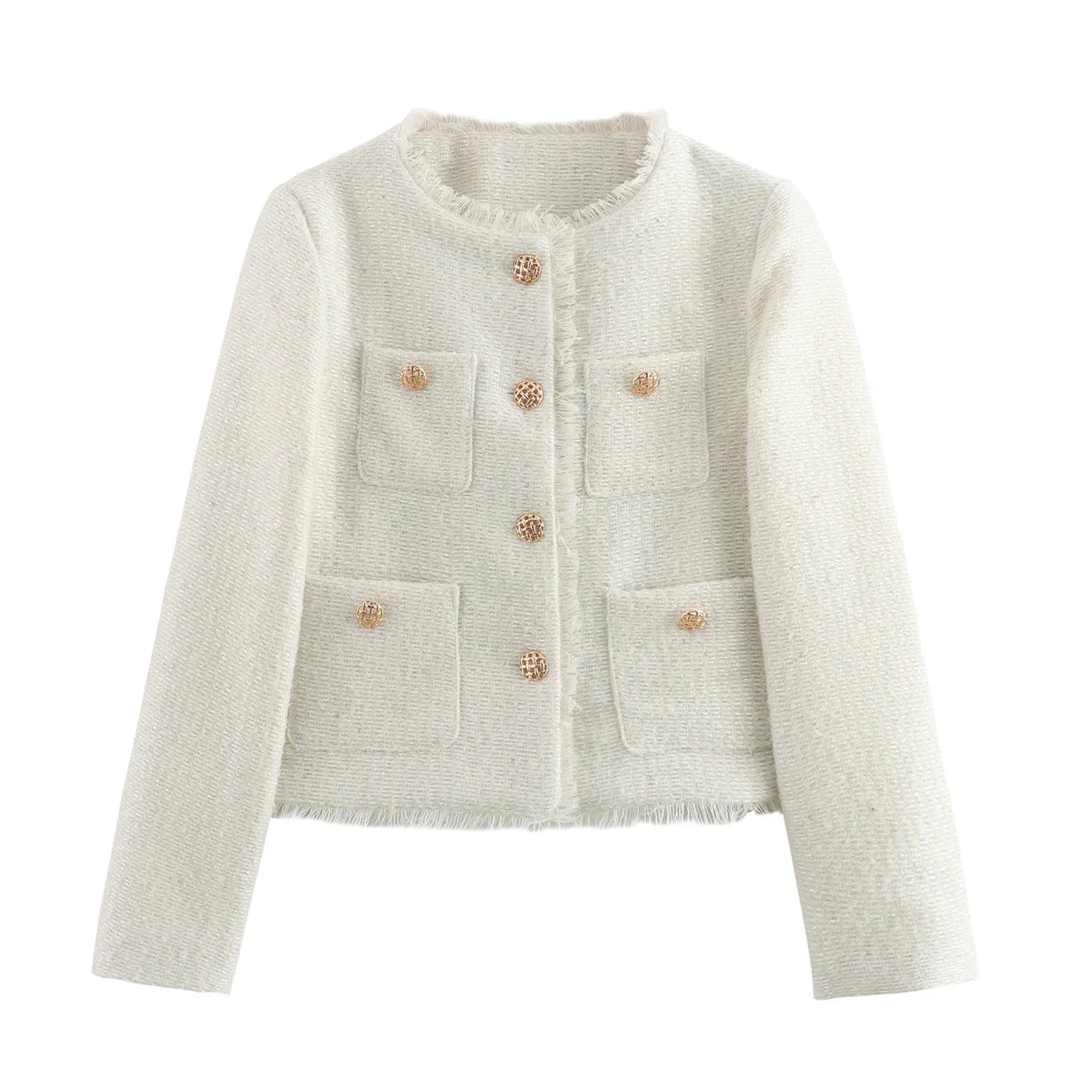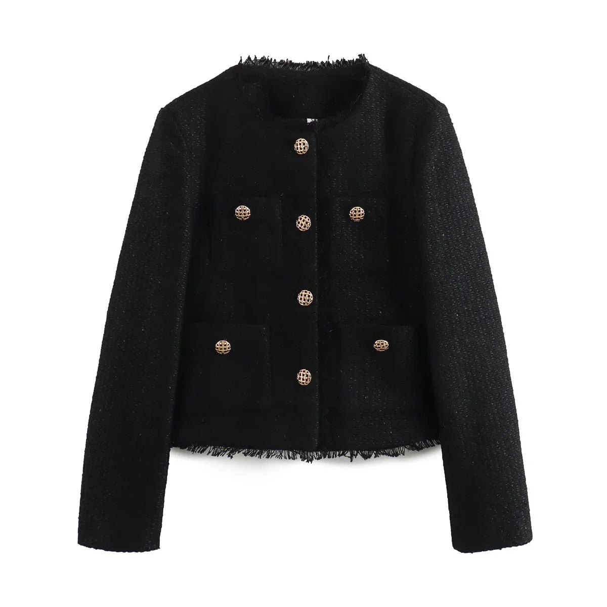Elevate your everyday look with this chic short overcoat. Featuring a vintage-inspired design with a clean O-neck collar and single-breasted closure, it creates a timeless silhouette that flatters effortlessly. Crafted from a soft knit blend with a comfortable standard thickness, it’s perfect for layering across all seasons. The solid colour and streamlined cut make it a versatile piece that transitions easily from day to night.
