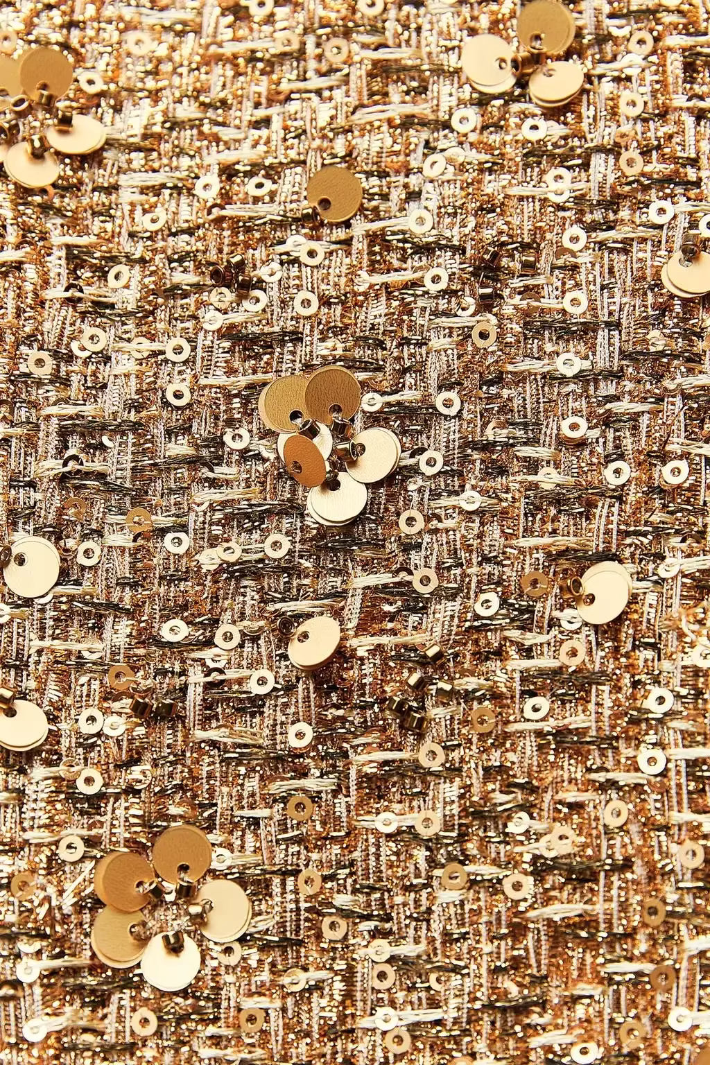 Turn every outfit into a statement with this eye-catching sequined bomber jacket. Designed with a classic round neck, long sleeves and front flap pockets, it’s decorated with shimmering sequins and subtle metallic threads for an elevated look. The contrast viscose lining feels soft against the skin, while the elasticized inner hem keeps the fit comfortable and flattering. A hidden snap closure under the flap maintains a sleek silhouette, making it perfect for both day and night wear.