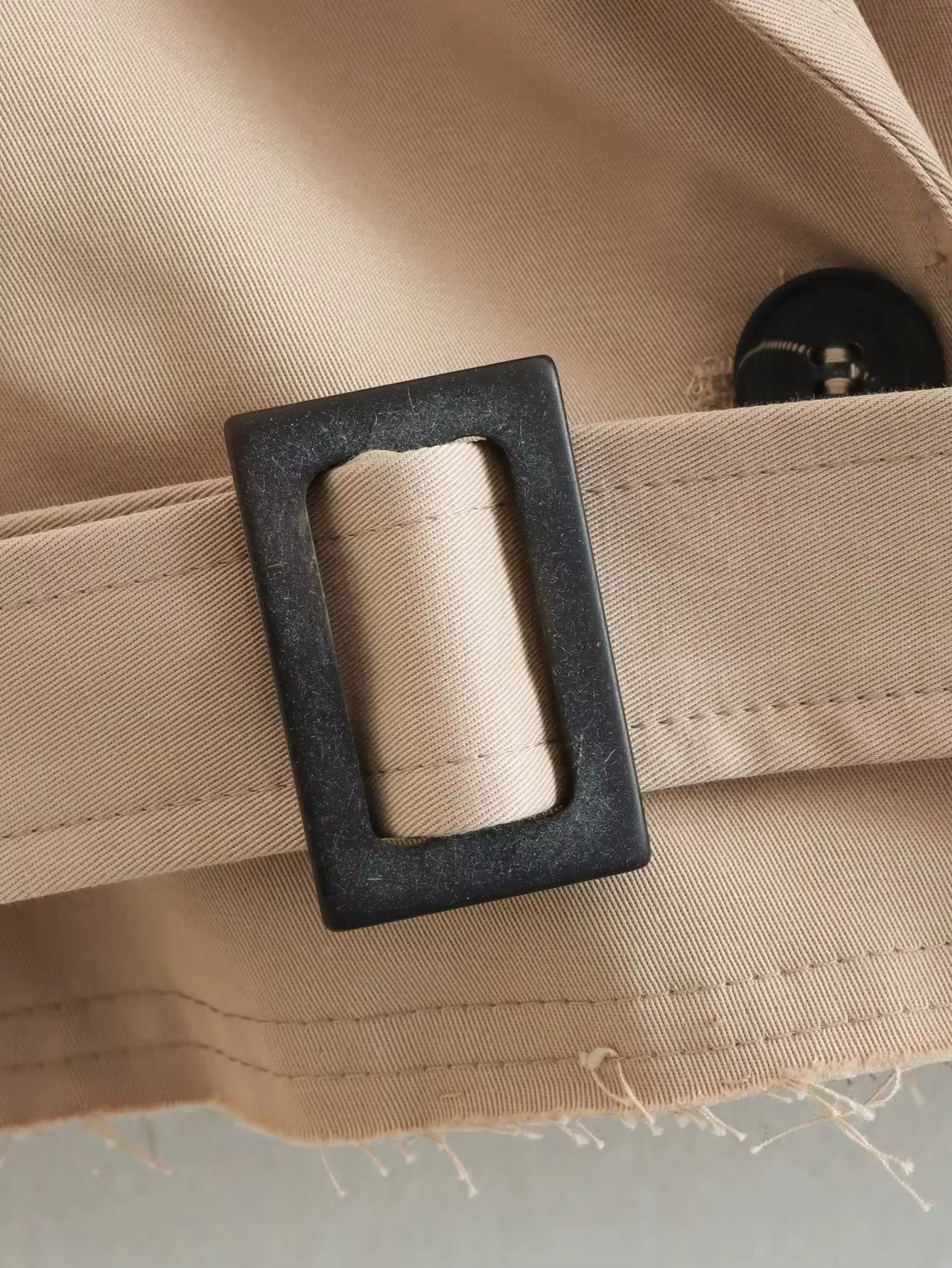 • Style: Double-breasted trench coat with adjustable belt